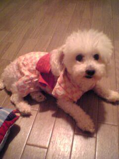 折角の浴衣だけど、わんこの足が短いので袖を切り落とし。